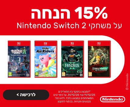 מבצע!מתנה כרטיס זוגי לסרטקנו ב- 699 ₪ וקבלו מתנהNintendo Switch 2 | The Legend of Zelda: Breath of the Wild