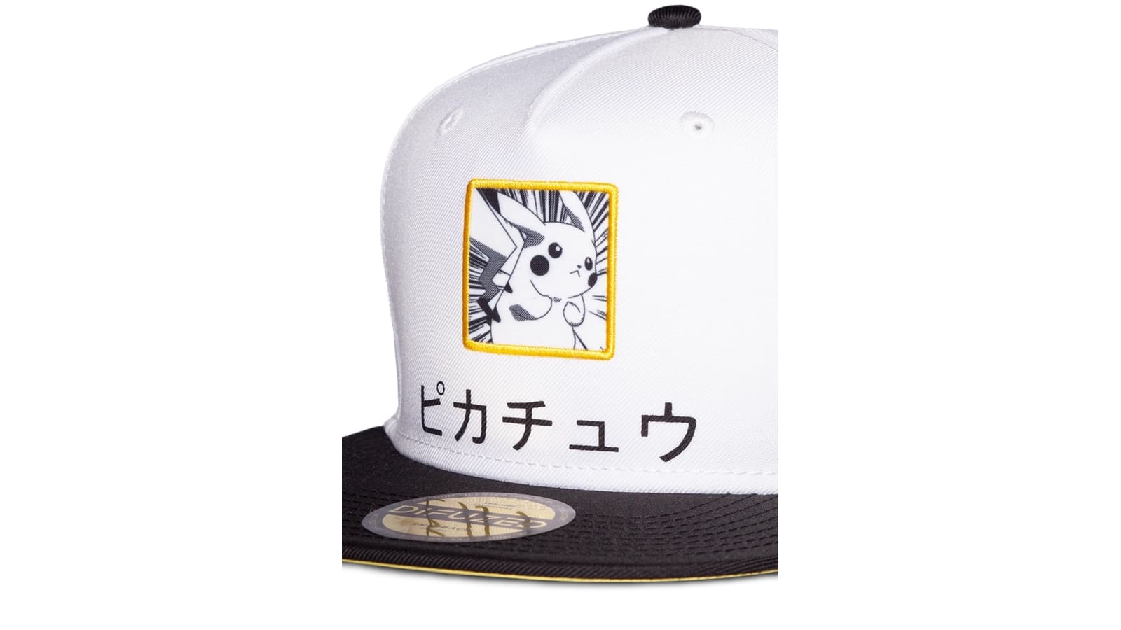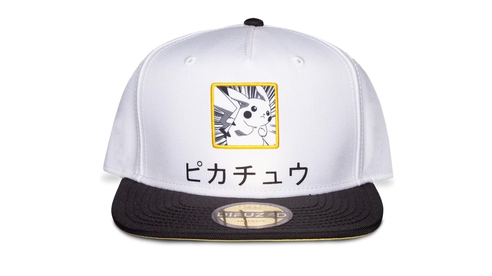 כובע מצחייה אופנתי בצבע לבן עם מצחייה בצבע שחור והדפס של הפוקימון האייקוני פיקאצ’ו!