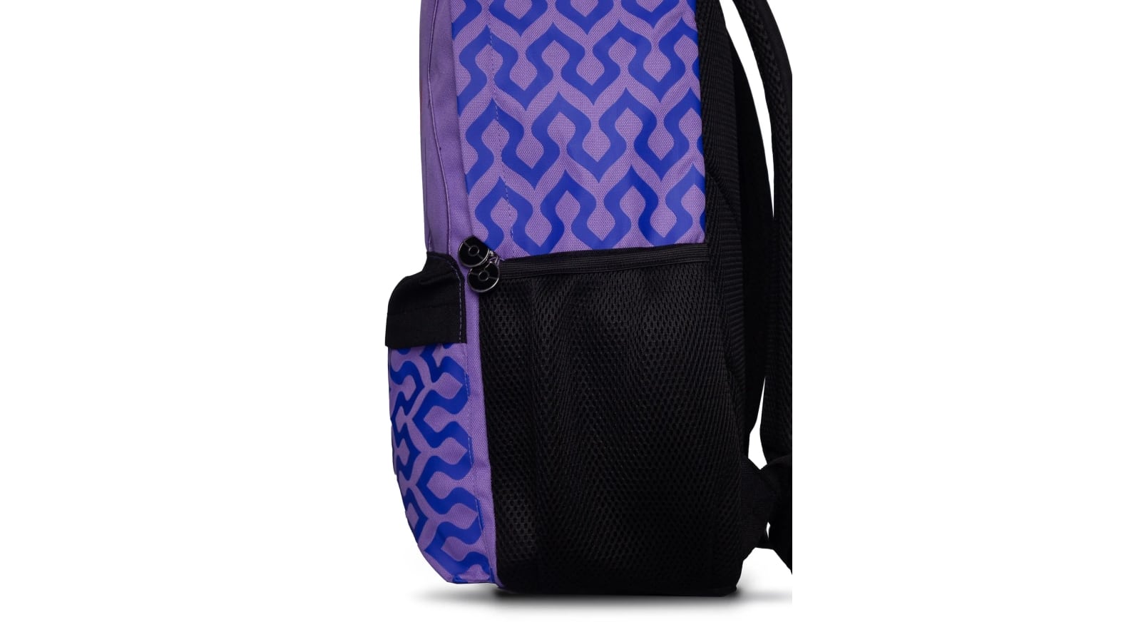 התיק כולל פלטת צבעים מרשימה של סגול ושחור על פני החזית, הצדדים והכיס הקדמי. גולת הכותרת היא טלאי גרפי נועז של גנגר בחזית – כולל החיוך השובב והעיניים האדומות המזוהים עמו.