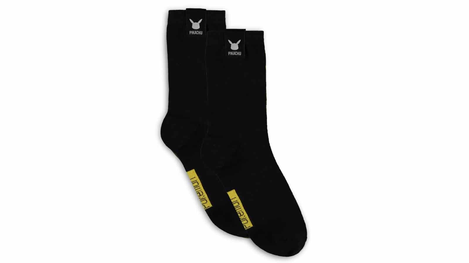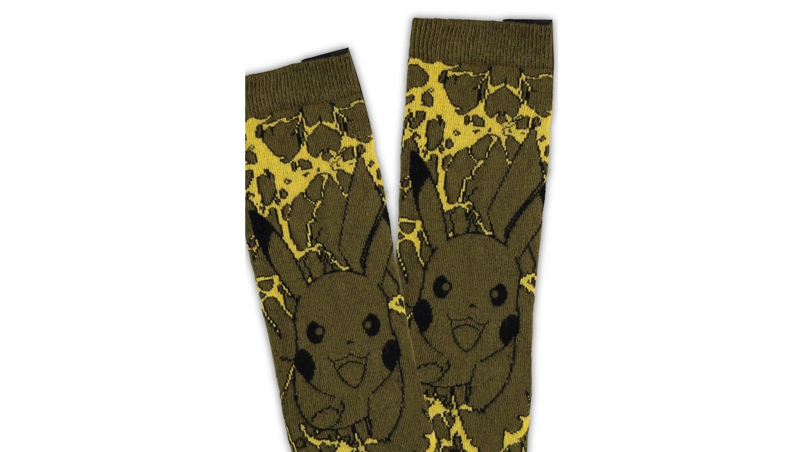 זוג גרביים דינמי זה כולל זוג אחד בירוק חי עם גימור צהוב מובלט, וזוג נוסף בשחור, לבן וצהוב, מושלם לכל Pokémon Trainer.